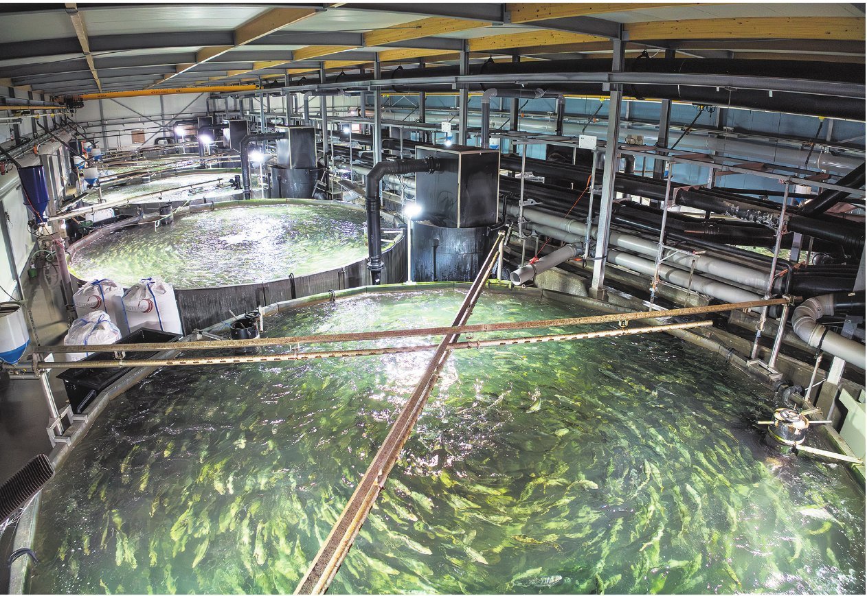 ‘We zitten hier direct naast de oude zeedijk en halen ons zeewater uit de Oosterschelde. Het is daarbij een groot voordeel dat we in een gematigd klimaat aan de andere kant van de wereld zitten en onze vissen binnen kweken. Door doorontwikkelde waterfiltratie en omdat specifieke parasieten en ziekteverwekkers niet in de directe omgeving voorkomen, kunnen we dat compleet zonder antibiotica en medicatie doen’, zegt Ruizeveld. Uit voorzorg ligt het broedhuis, dat zelf al zo’n 1.500 vierkante meter beslaat, op ruim honderd meter van de productie- en verwerkingshallen van bijna anderhalve hectare. Bezoekers kunnen in principe alleen vanachter glas toekijken.