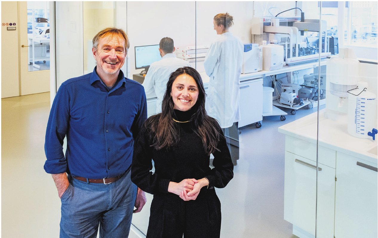MyMicroZoo-medewerkers Jos Seegers (links) en Fleur van Eeden in het lab van Baseclear, waar darmmicrobioomanalyse plaatsvindt. Foto: Michiel Wijnbergh