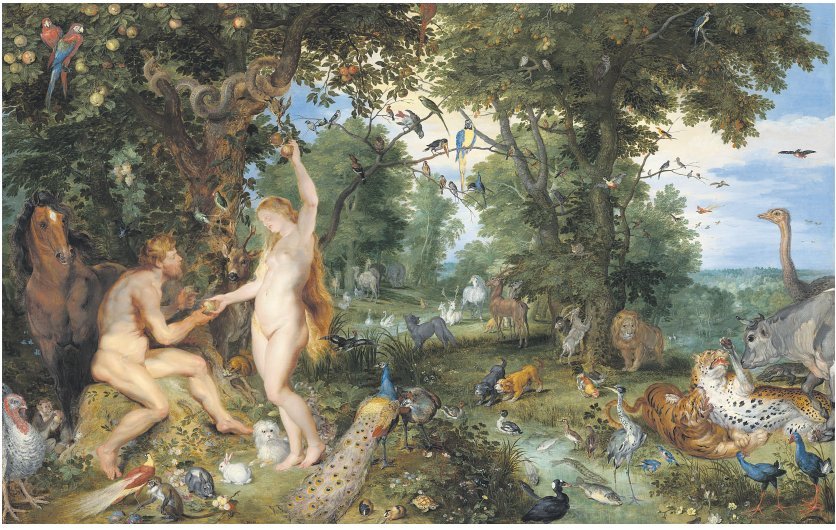 Het aardse paradijs met de zondeval van Adam en Eva (rond 1615) van Peter Paul Rubens en Jan Brueghel de Oude. Volgens Midas Dekkers bevinden de ‘beste paradijzen zich in het verleden’. BEELD: MAURITSHUIS, DEN HAAG
